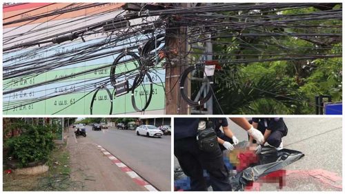 The plea was made in a TV video that showed what happened before Maneenet Charoenngao, 40, became entangled in an internet cable on a downtown road.