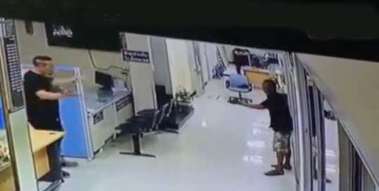 It is a situation that in many countries may have ended in a shooting of an assailant. But at Huay Kwang police station a potentially violent situation ended in a big Thai bear hug