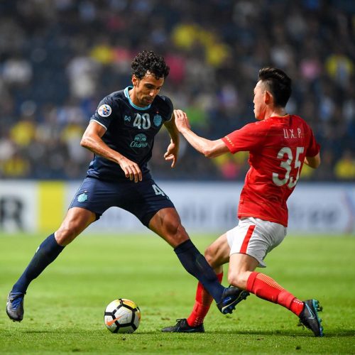 The Chinese looked comfortable on the ball and moved it around quickly as they probed for openings. On the other hand, Buriram were reduced to humping long balls forward for Edgar, a tactic they employed throughout the opening half and the visitors’ defence had little trouble dealing with them.