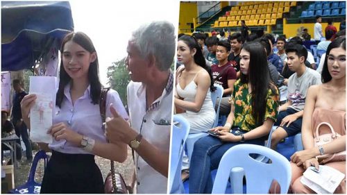 The occasion of the draft is always full of Thai lady boys asking to be made exempt from military service.