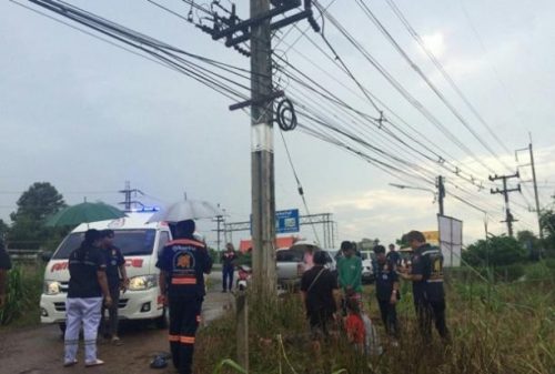 After rushing to the scene, police found a man, identified as Ratthawut Phanompha, 20, lying unconscious near a 20-metre-high power pole opposite a local shrine.