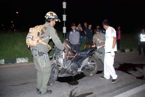 The truck that hit the motorcycle was driven by Thana Pongpattanakornm 42, who waited for police at the scene.