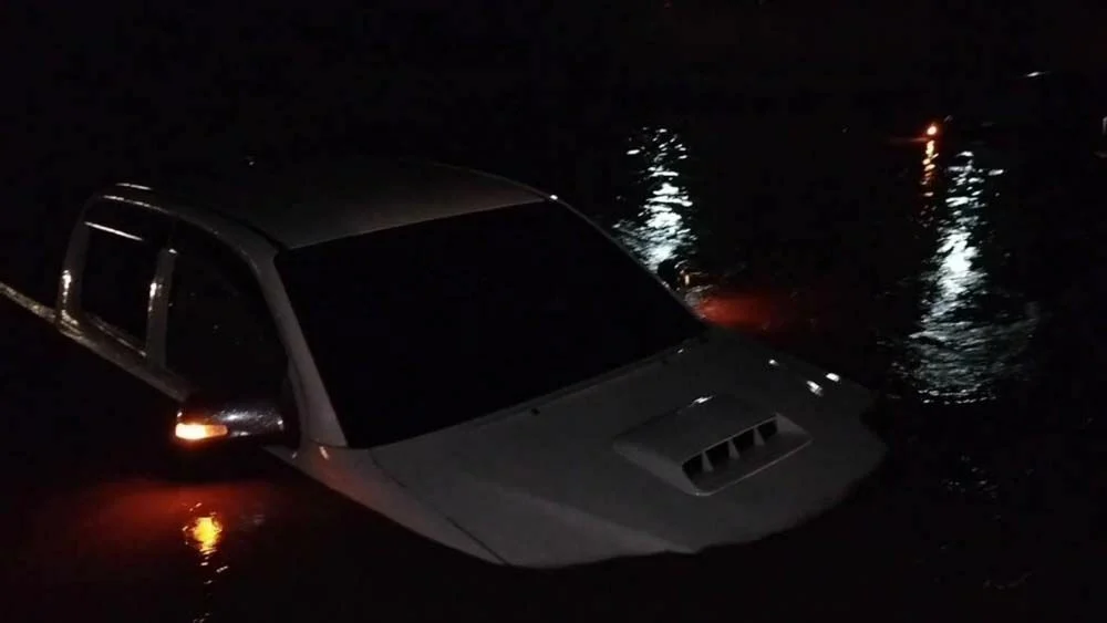 Yesterday, a sudden storm hit Chaiyaphum province in northeastern Thailand, resulting in blocked roads and flooding due to fallen trees. Despite the darkness, two drivers managed to escape unharmed after their cars slipped off the road. Authorities have been called upon to enhance the lighting in the area to reduce the occurrence of accidents.