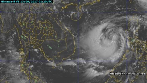 Tropical storm “Doksuri”, which is now over the upper South China Sea, is likely to bring rain, with torrential downpours, to the Northeast and the North on Sept 15-16, according to the Thai Meteorological Department’s forecast at 11am on Wednesday (Sept 13).